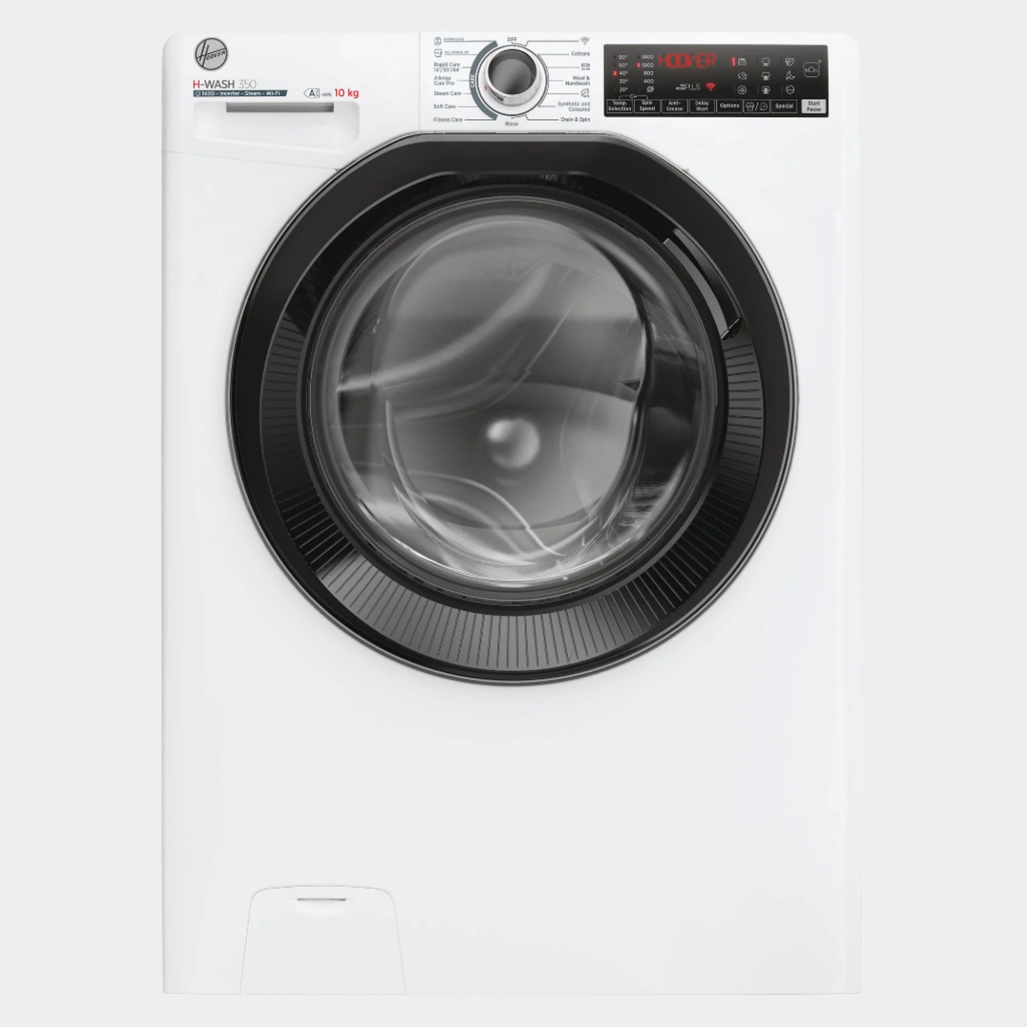 H-Wash 350 - White/Black - 10KG delivers expert fabric care, top efficiency, and maximum clothes protection with its ECO-Power Inverter Motor. The Allergy Care Pro cycle removes 99.9% of bacteria and allergens, while the hOn App offers 50+ specialized cycles and smart features for every washing need.