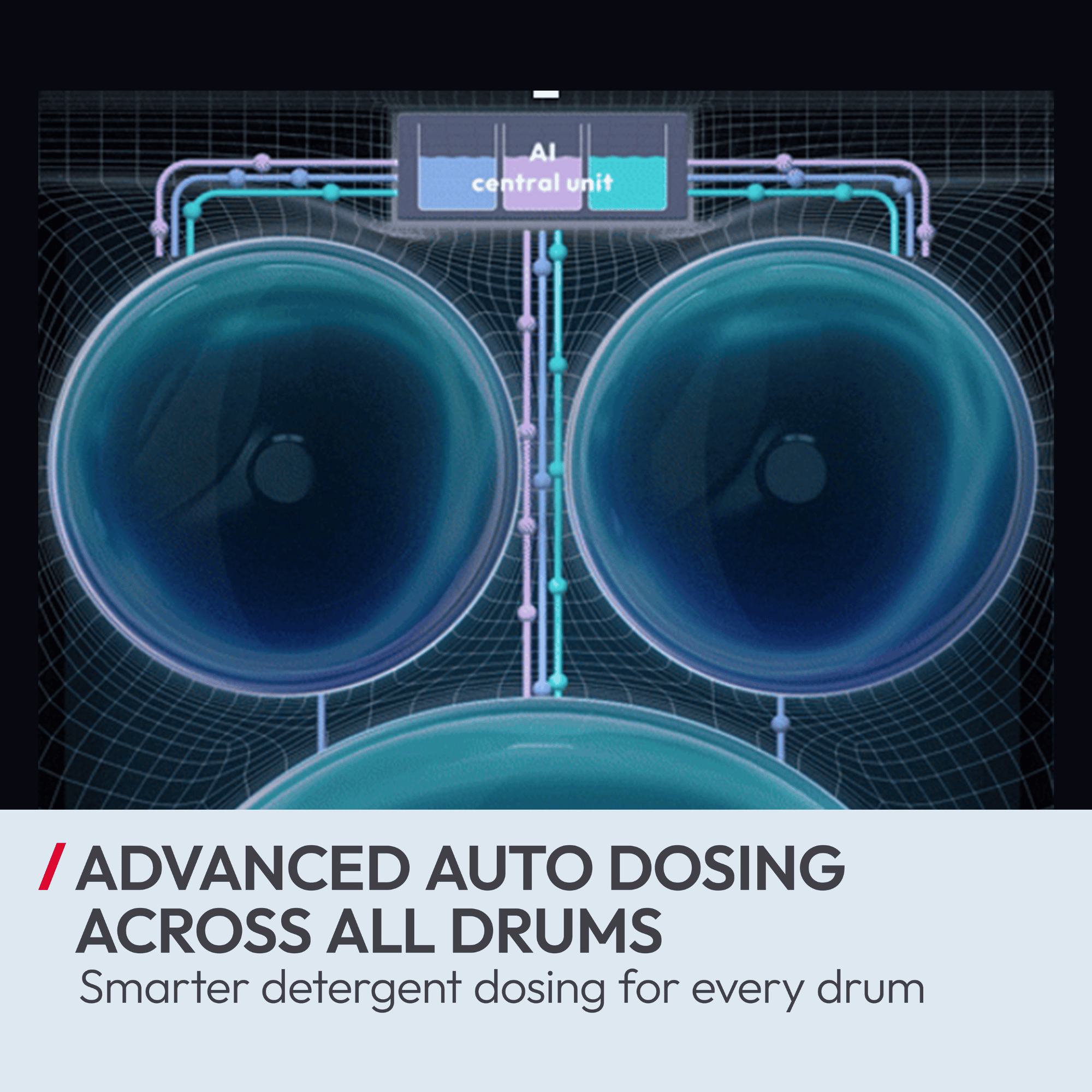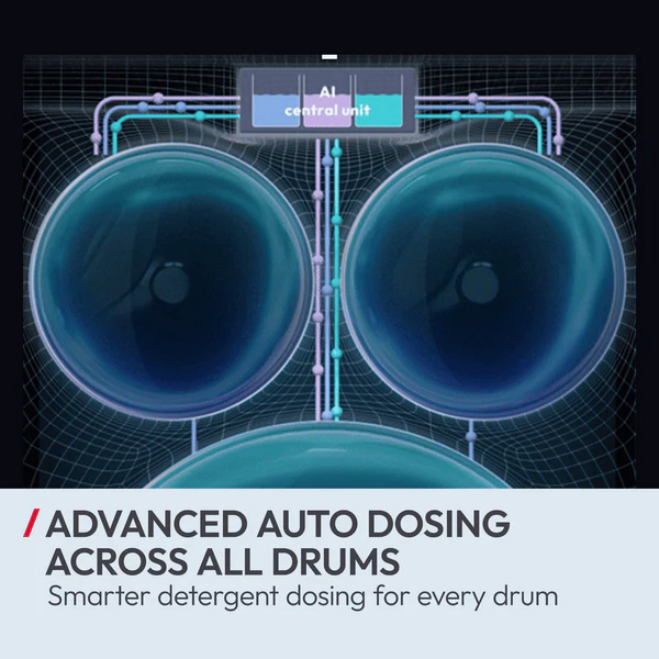 - Efficient and effortless: Independent water flows and automatic detergent dosing (Autodose) for each drum.