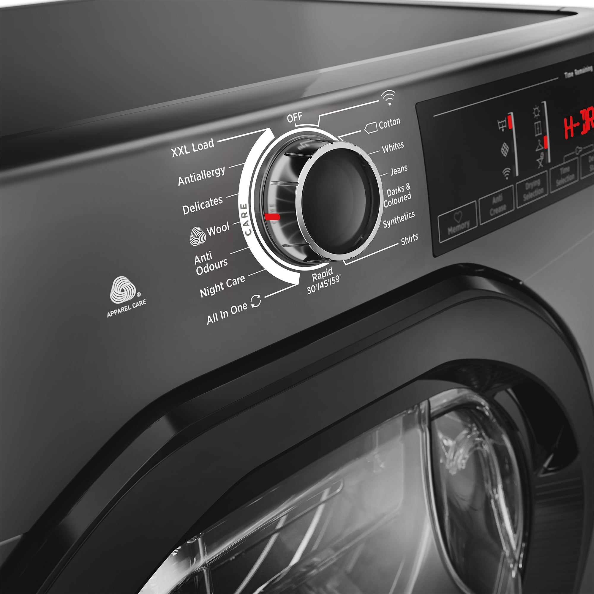 H-DRY 350 offers a full range of drying cycles designed to protect fabrics and preserve colors with ease. With Wi-Fi + Bluetooth connectivity, you can link it to the hOn App to control your dryer remotely and access smart tips to boost drying performance.