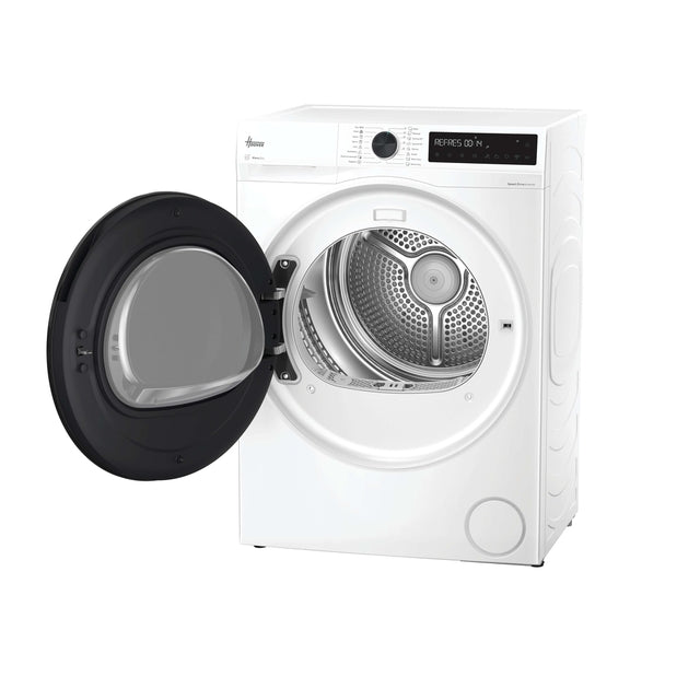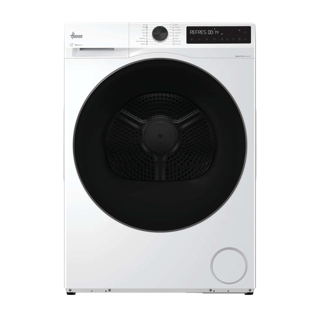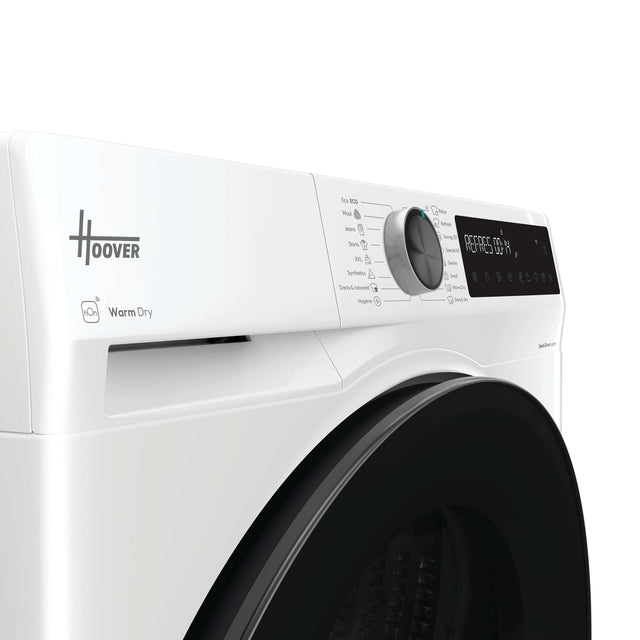 The Hoover Pro Dry Series 5 (Heat Pump) Tumble Dryer - White - 10KG offers energy-efficient, tailored drying with a 99.9% antibacterial Hygiene Cycle and gentle care for delicates. Featuring AI Smart Move for tangle-free results, it is easily controlled via the hOn app.