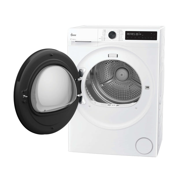 The Hoover Pro Dry Series 3 (Heat Pump) Tumble Dryer - White - 9KG provides energy-efficient drying with a 99.9% antibacterial Hygiene Cycle and gentle care for delicates. Featuring AI Smart Move for tangle-free results, it offers effortless control via the hOn app.
