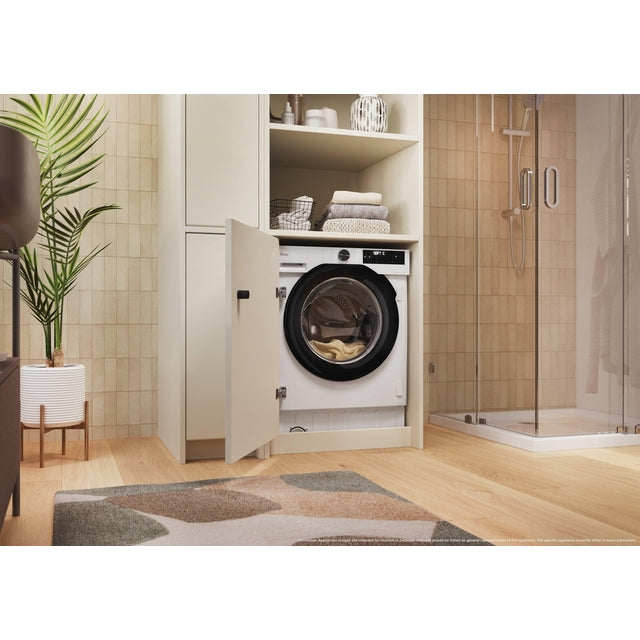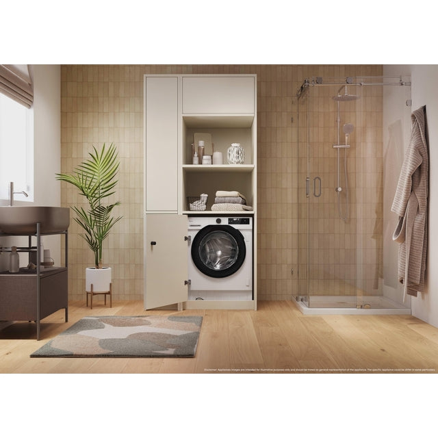 H-Wash & Dry 400 Integrated Washer Dryer - White - 6/9KG pairs sleek design with smart controls, featuring AI Weight Sense, ProMix detergent distribution, hOn app connectivity, and six Care Cycles for precise, effortless laundry.