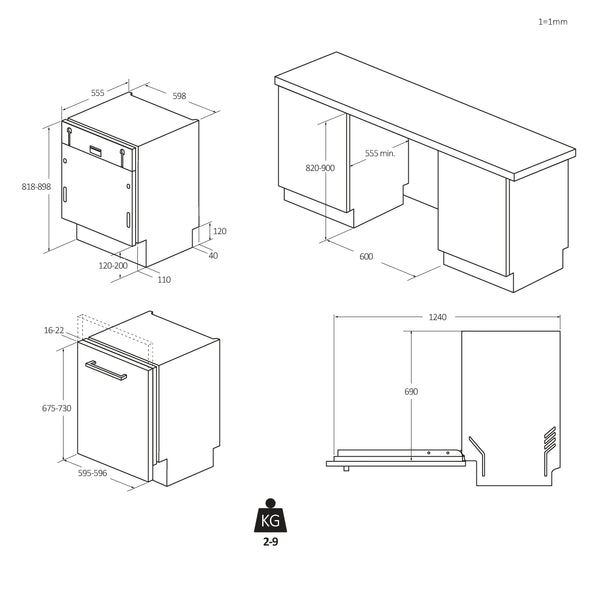 H-Dish 700 Integrated Dishwasher - Anthracite - 16 Place Settings (HI 6B2S3PSTA-80)