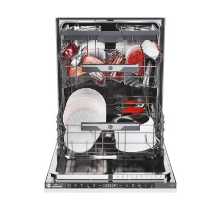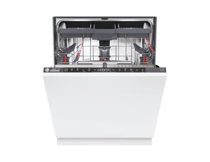 The Hoover H-DISH 700 offers customizable cycles, adjustable settings, and features like extra-dry and auto open-door for perfect washing and drying, even for delicate crockery in a single load.