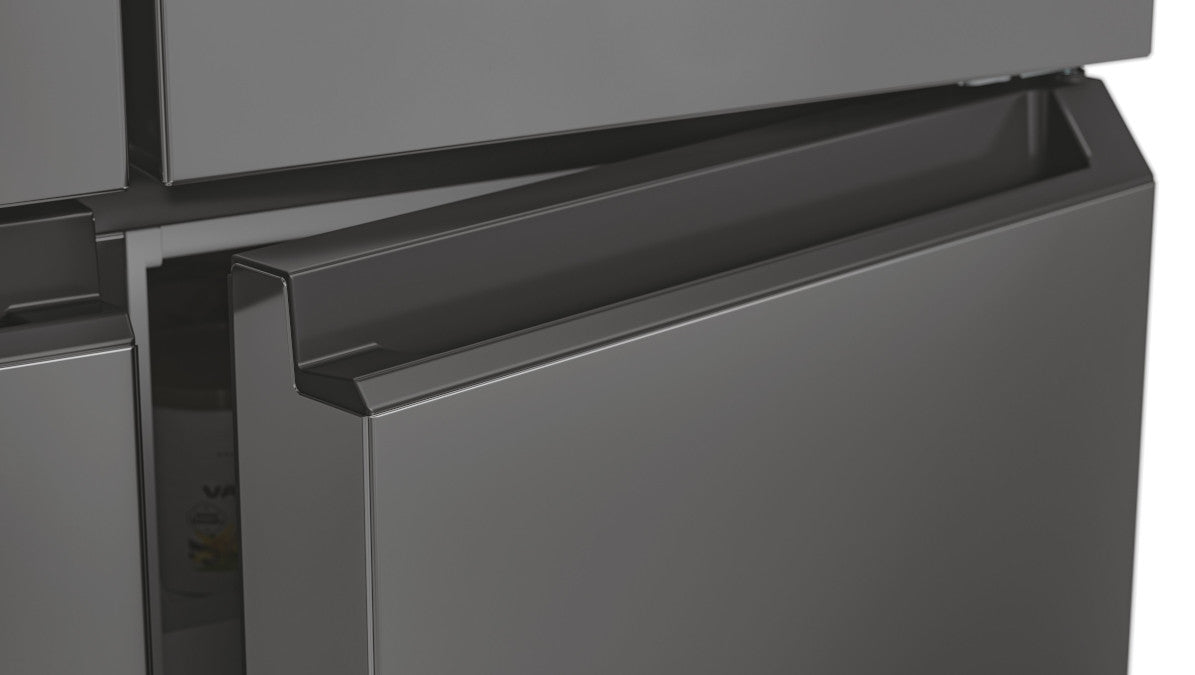 The H-Fridge 700 Maxi - Silver - 463L features a design with two fridge doors on top and two freezer doors below, providing ample storage space and fitting seamlessly into any kitchen style. It also ensures top performance thanks to Total No Frost technology.