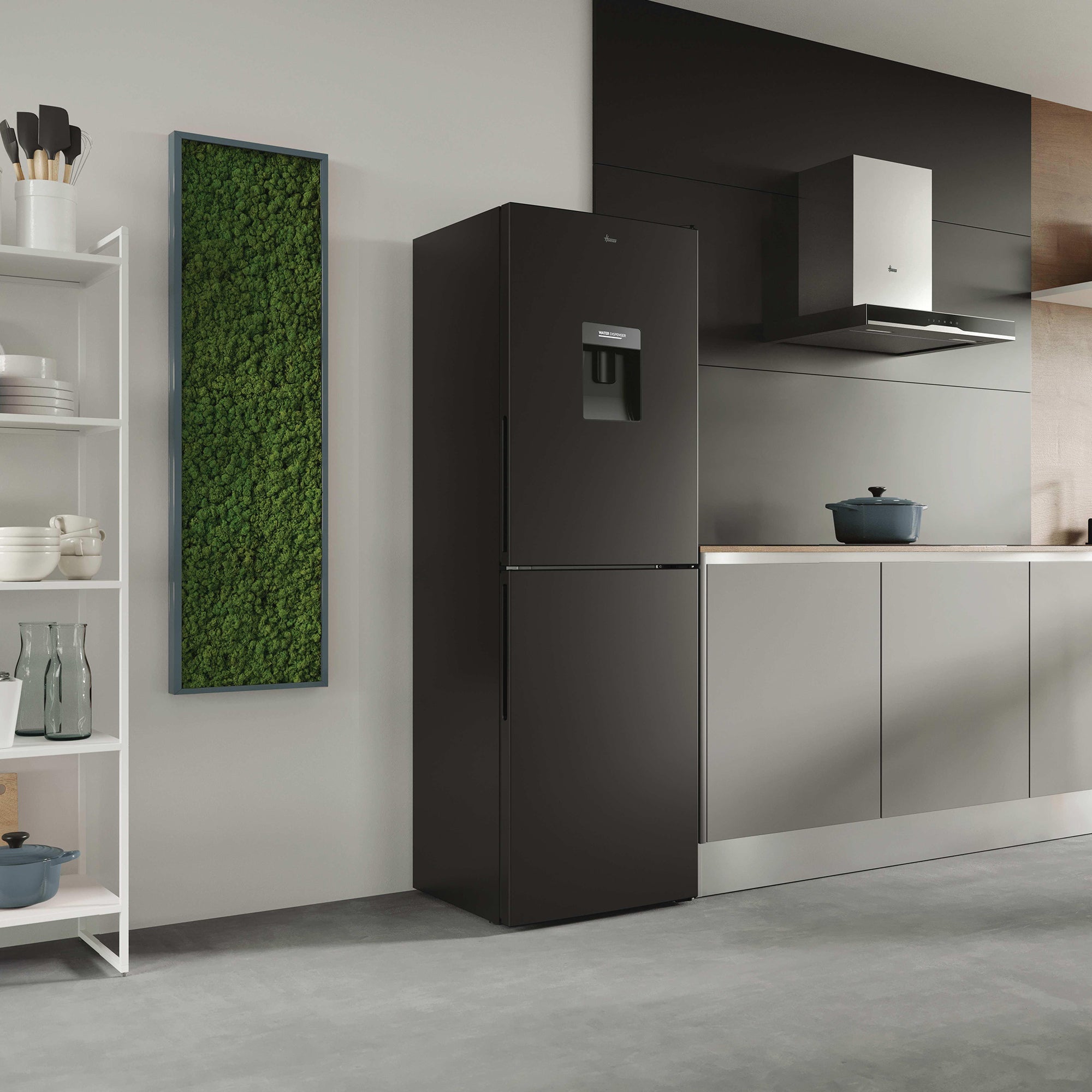 The H-Fridge 300- Black - 246L is a slim 55 cm refrigerator, ideal for small kitchens or limited spaces. Its Low Frost technology and internal display with degree-by-degree temperature control make it smart and easy to use.