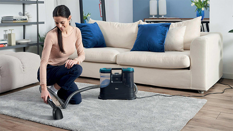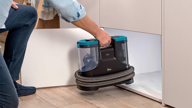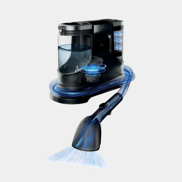 The Hoover HS5 Spot Wash & Dry cleans and dries in one go, tackling stains on carpets, sofas, cars, and glass with heated water and powerful suction. Its all-in-one design and compact, easy-to-store build make cleaning quick and effortless.