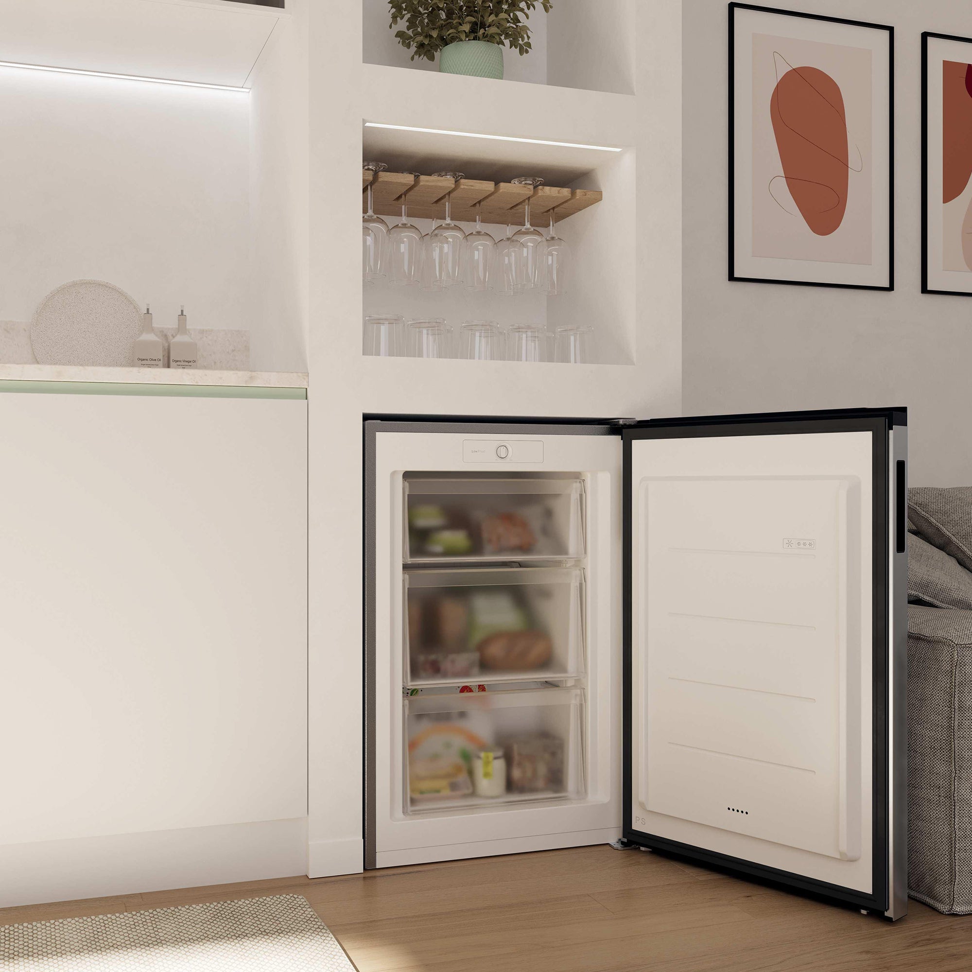 H-FREEZE 300 Mini is the compact yet powerful freezer that fits anywhere—ideal for extra frozen storage without compromising on style. Its elegant Italian design blends seamlessly into any kitchen, offering both practicality and sophistication.
