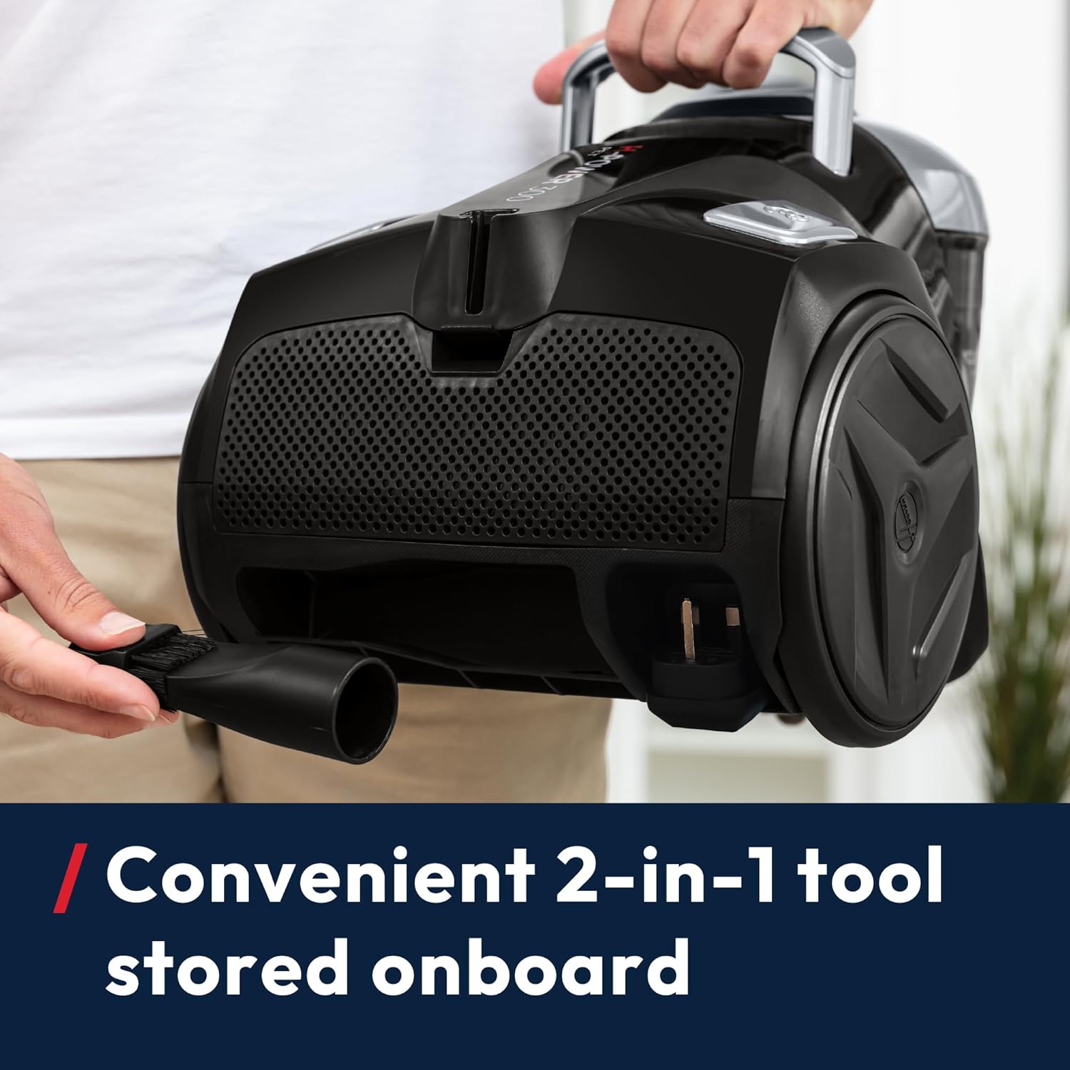 - Functionality - Comes with 2-in-1 crevice and dusting tool plus large 2L bin