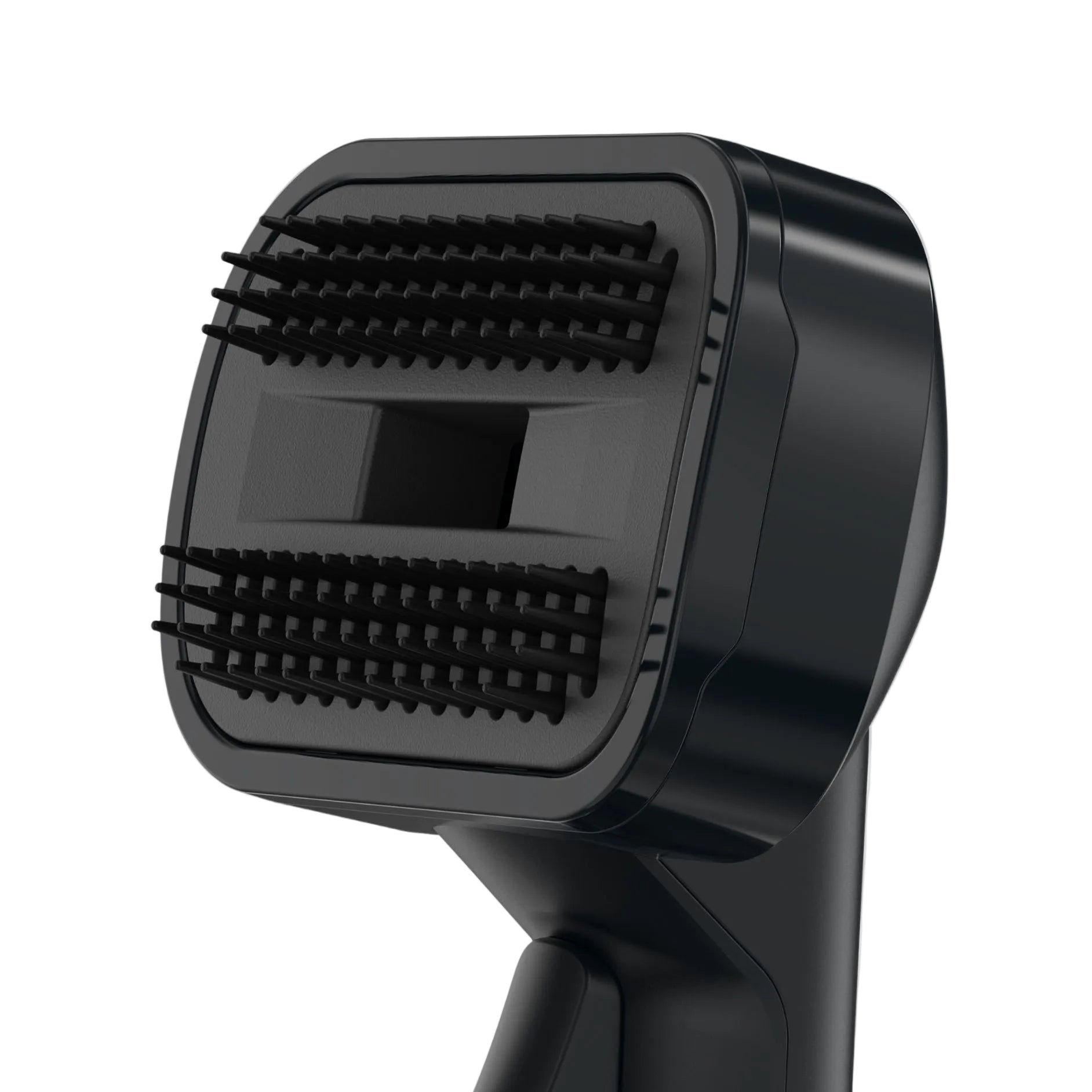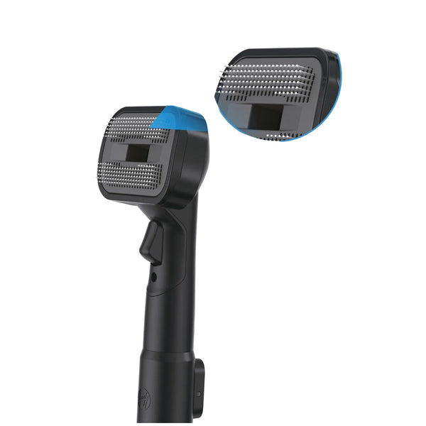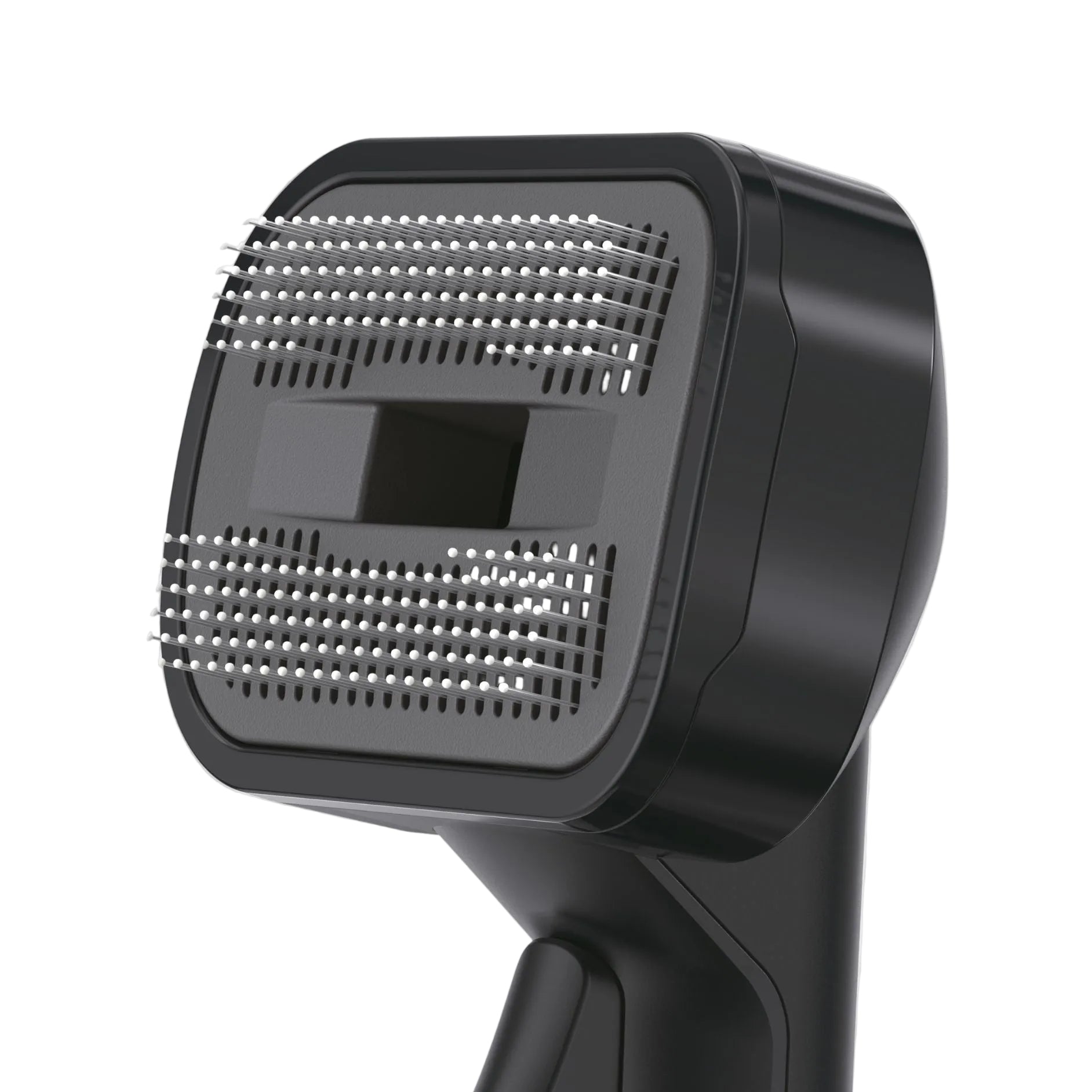 Loose hairs will get sucked up into the vacuum to avoid any mess. Simply press the trigger to retract the brush and release any hairs that are stuck on the bristles after use.