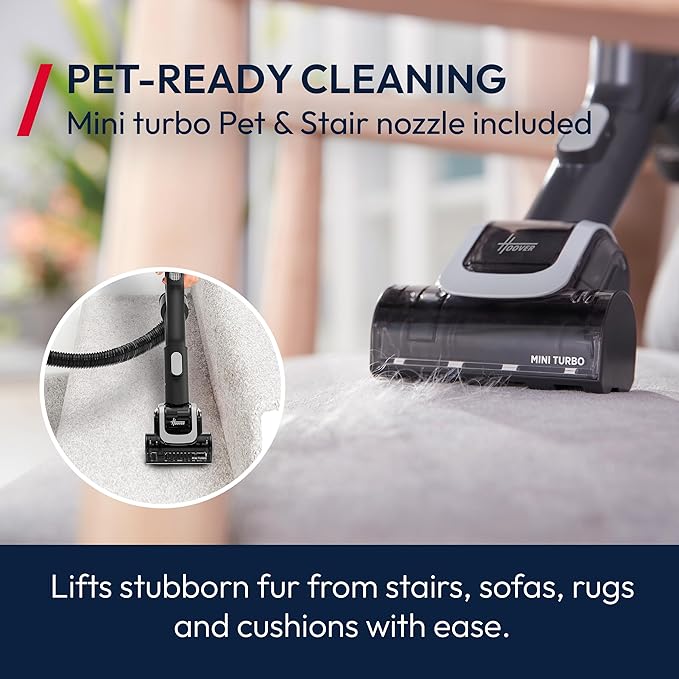 Ultra-lightweight, powerful and generous capacity — effortless cleaning in one smart upright. Plus an extra motorised pet tool to remove stubborn hair from upholstery.