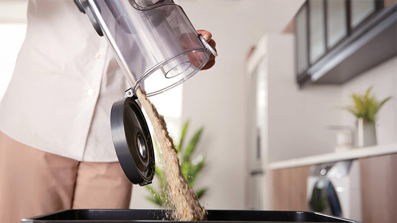 - Large capacity & easy emptying – 2.5L bin with one-click release.