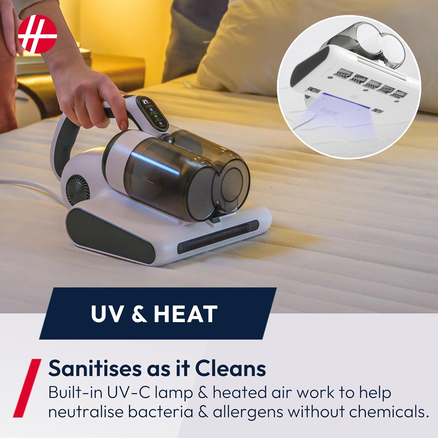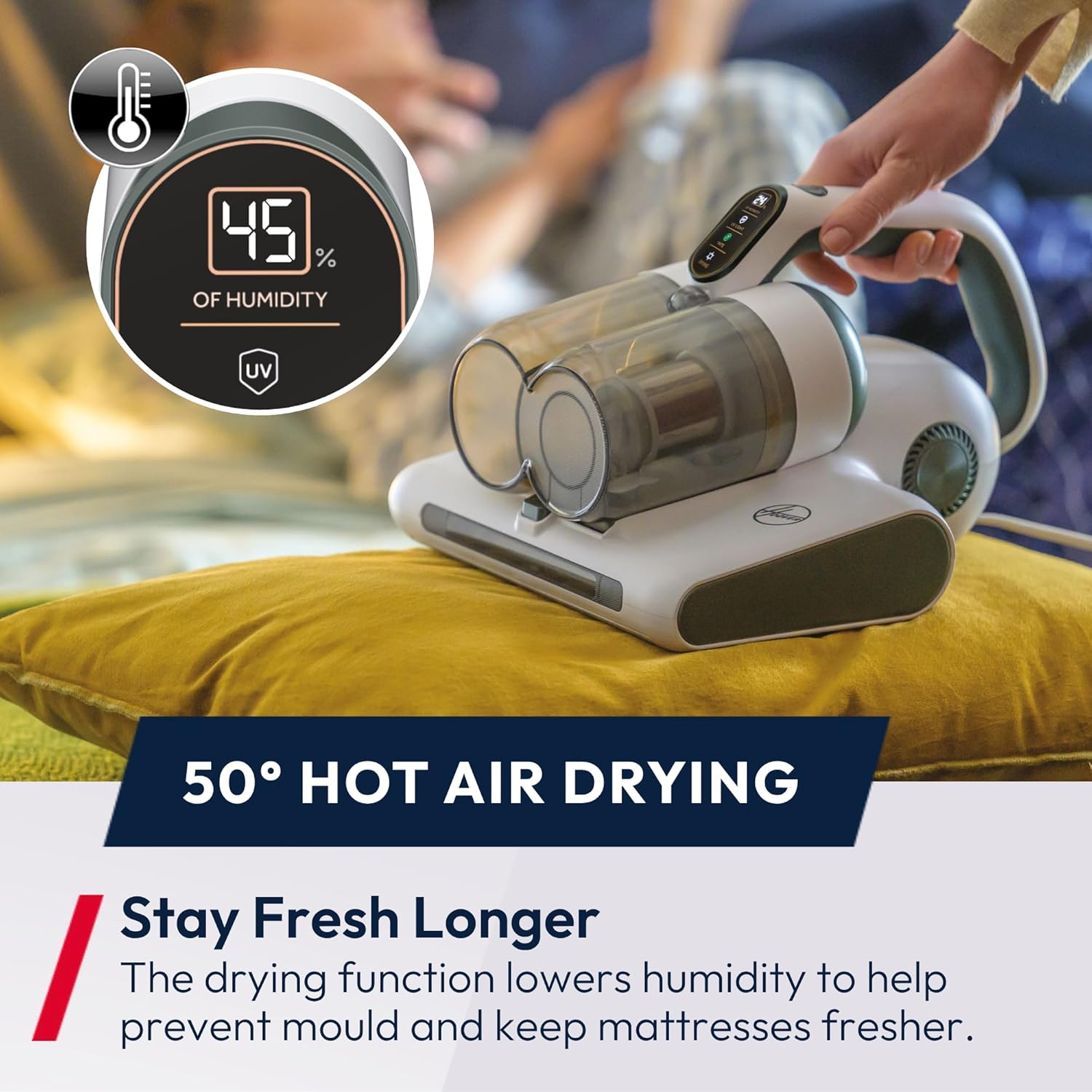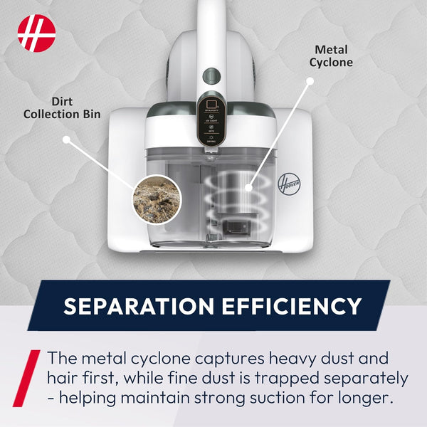 Experience a deeper, healthier clean with the Hoover 4-in-1 Corded Handheld UV Mattress Vacuum Cleaner – White HMC5 (also available here in Black). Designed to remove bacteria, mould, and allergens, this powerful cleaning device ensures a fresher, more hygienic sleeping environment.