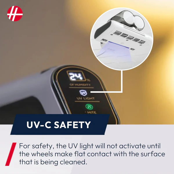 *PLEASE NOTE - For safety, the UV light will not activate until the wheels make contact with the surface that is being cleaned.