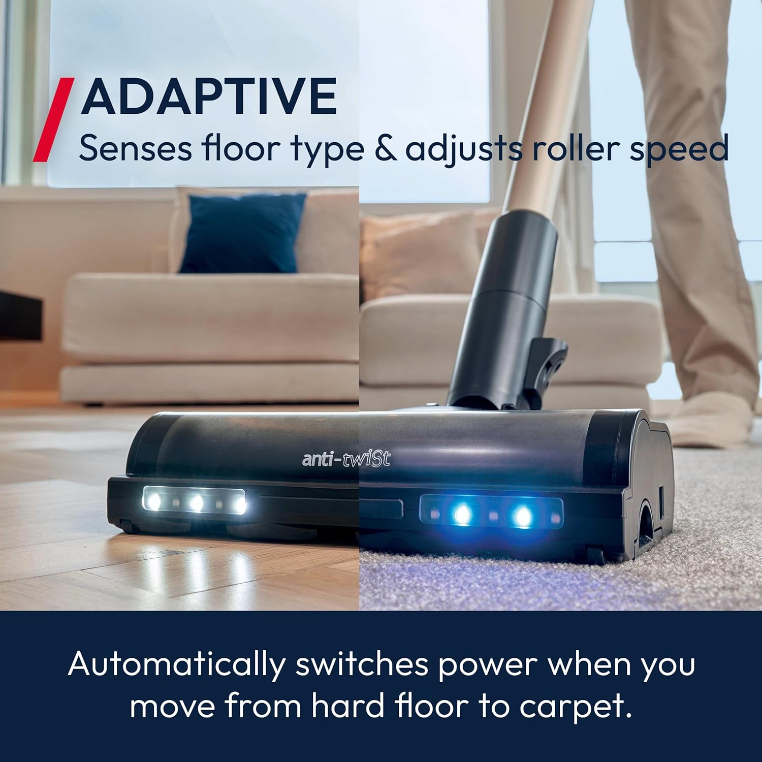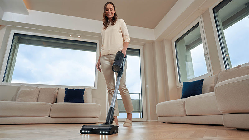 - Smart Floor Sensing: Auto-adjusts power for carpets or hard floors — LED lights reveal hidden dust.