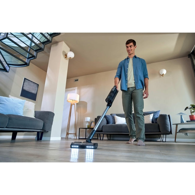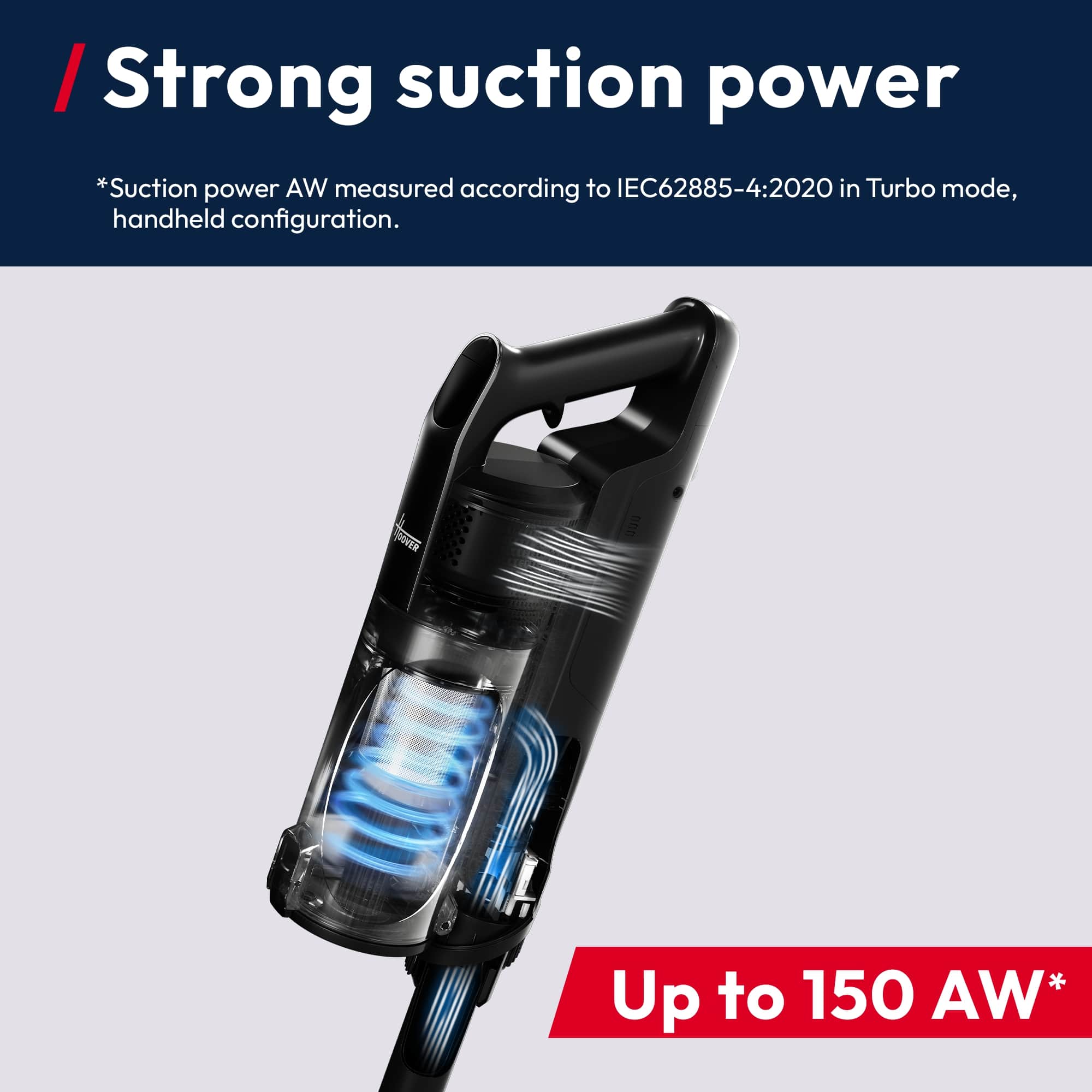 Built with a high-speed motor delivering up to 150AW¹ of suction power for fast, efficient cleaning performance.