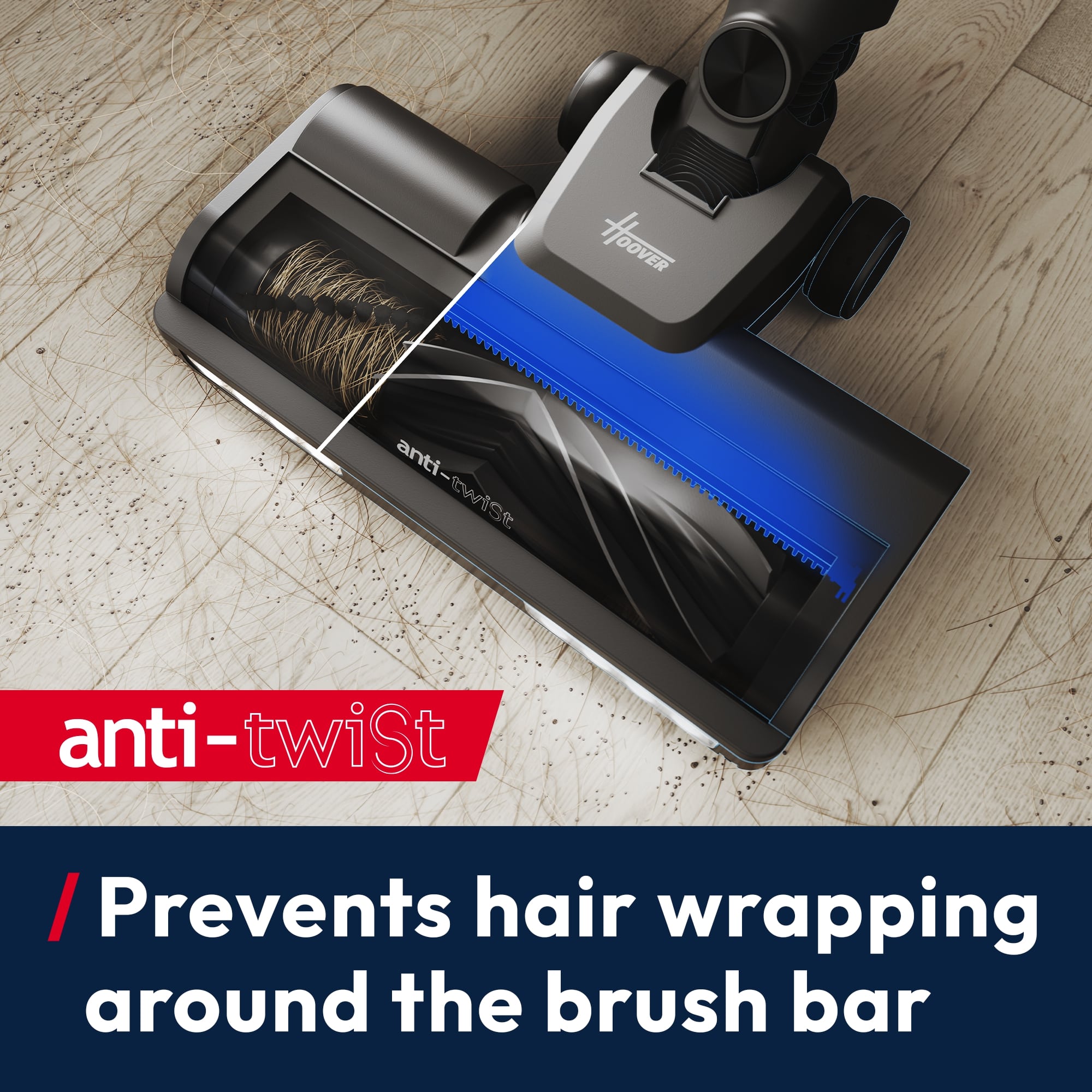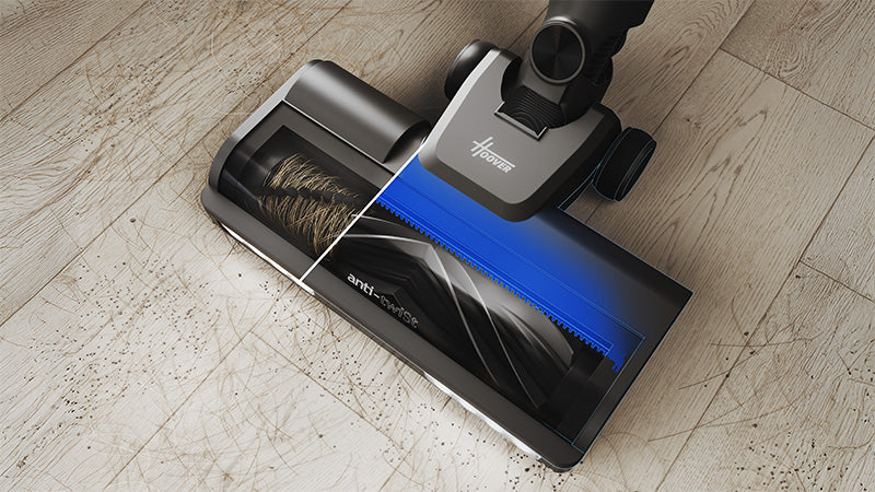 An integrated comb actively prevents hair wrapping around the brush bar — no more tangled mess.