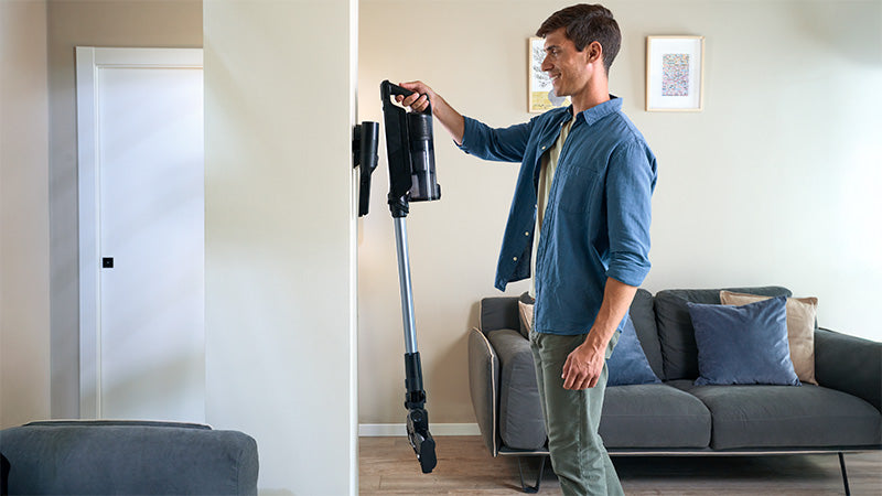 ⁴If attended, the vacuum can be briefly parked on hard floors. When unattended, always store it on the wall mount.