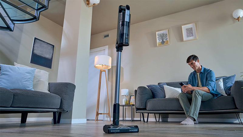Pause cleaning anytime by temporarily parking the vacuum upright.