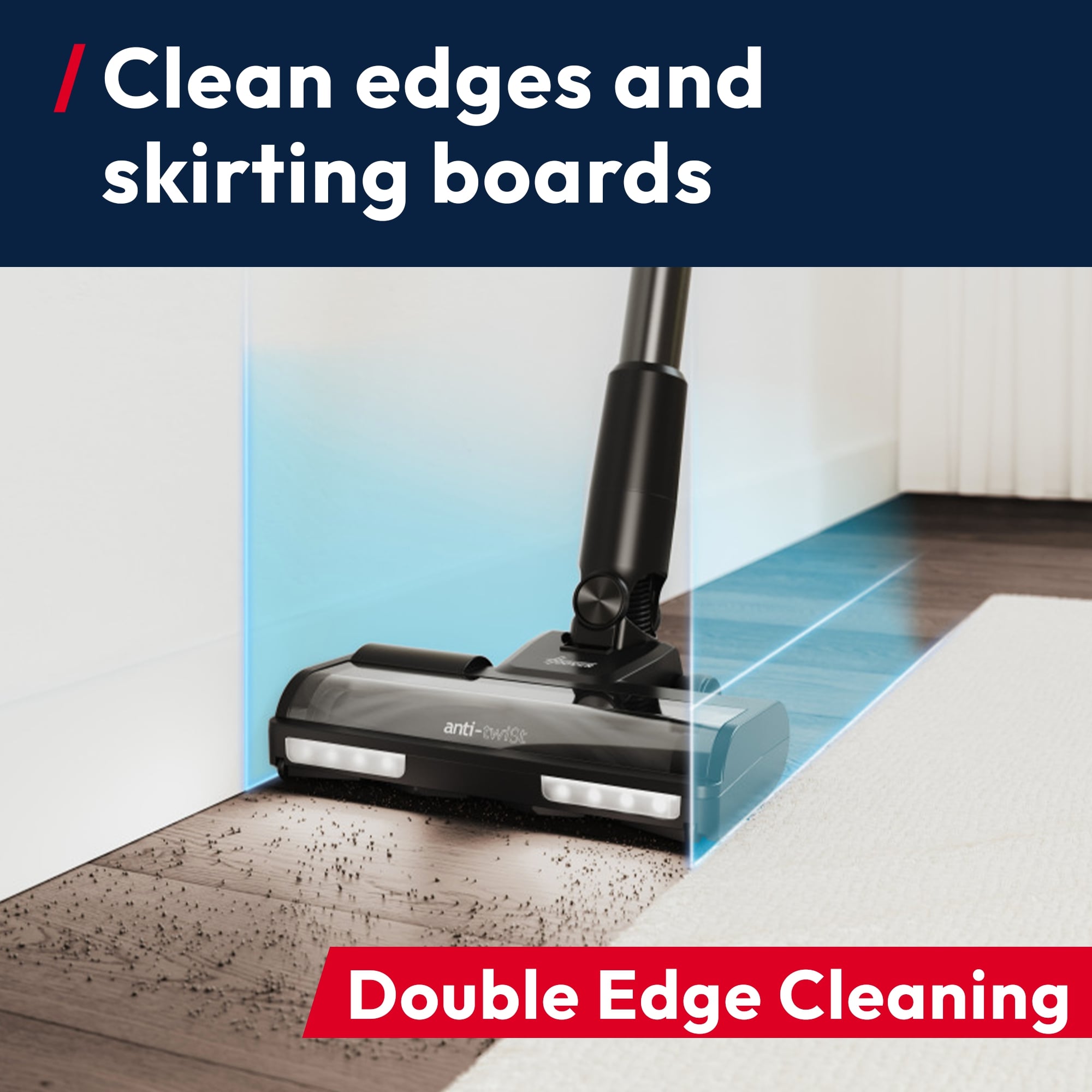 Effectively picks up dust along both sides of the floorhead — perfect for edges and skirting boards.