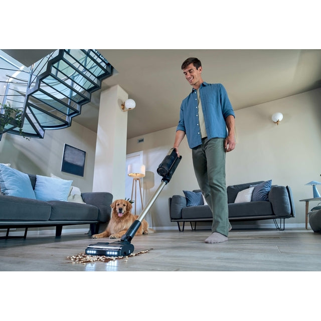 This cordless stick vacuum is built with a high-speed motor for up to 150AW¹ suction power to provide efficient cleaning results.